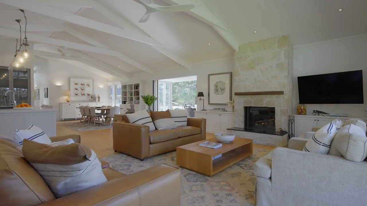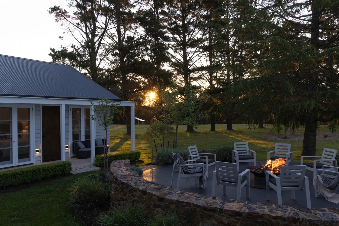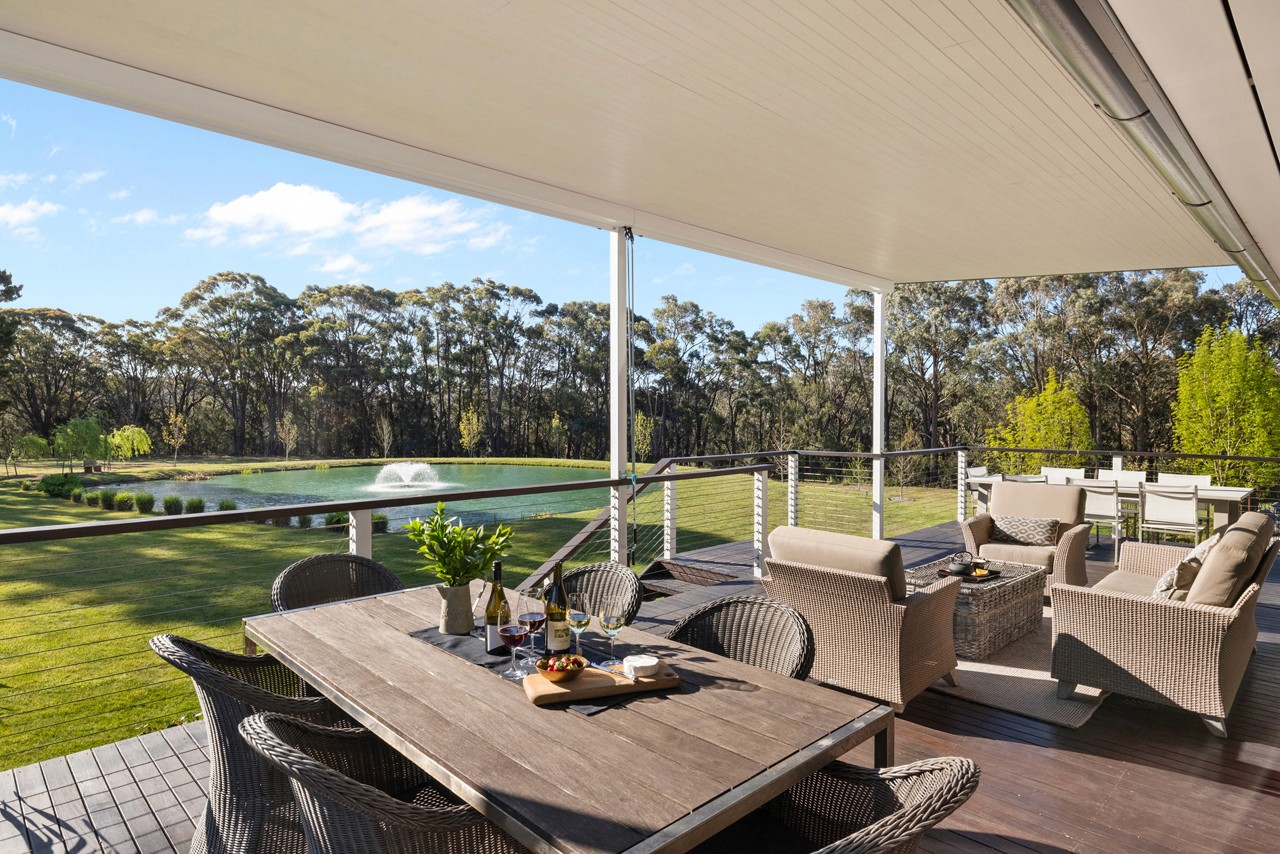 Designed for refined entertaining and relaxed rural living, the estate offers a heated mineral pool, spa, landscaped gardens, firepits, multiple alfresco dining areas and panoramic bushland views.